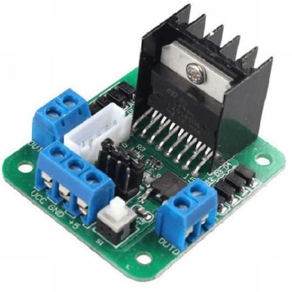 This module is based on L298N,high voltage,high current dual full bridge driver which can be used to drive a DC motor and stepper motor, relay coil inductive load; using standard logic level signal control; having two enable control end allow or prohibit the work has a logic device power supply input terminal, in the case regardless of the input signal affect the internal logic circuit portion to operate at a low voltage; can be an external sense resistor, the amount of change in feedback to the control circuit. This module integrates a built-in 5V power supply. When you drive voltage of 7V-35V can onboard 5V logic supply, do not input voltage when using onboard 5V power supply, the +5 V power supply interface, but leads to 5V .