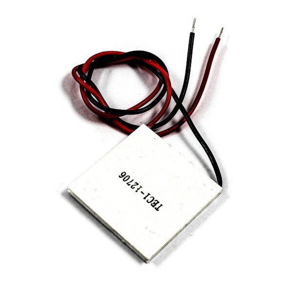 TEC1-127060 Semiconductor Thermoelectric Peltier Cooler [12V, 6A] package contains of 6A thermoelectric coolers. The thermoelectric cooler also is known as TEC or Peltier cooler, is an active semiconductor part, which enables to give heat on one side and get the heat on another side, results in differential temperature on its sides, means one side is cooler and another side is hotter than ambient. In other words, a Peltier cooler/heater is an active heat pump, which consumes electric power to transfer heat energy from one side to another side. Therefore, it can be used for warming or cooling something or even simultaneously warming a thing and cooling another thing. This TEC is supplied with 12V and 6A current and can produce up to 60 degrees Celcius differential temperature between two sides. It should be used with a heatsink to prevent burning due to overhot. Also for better heat-conducting, thermal paste using is recommended.